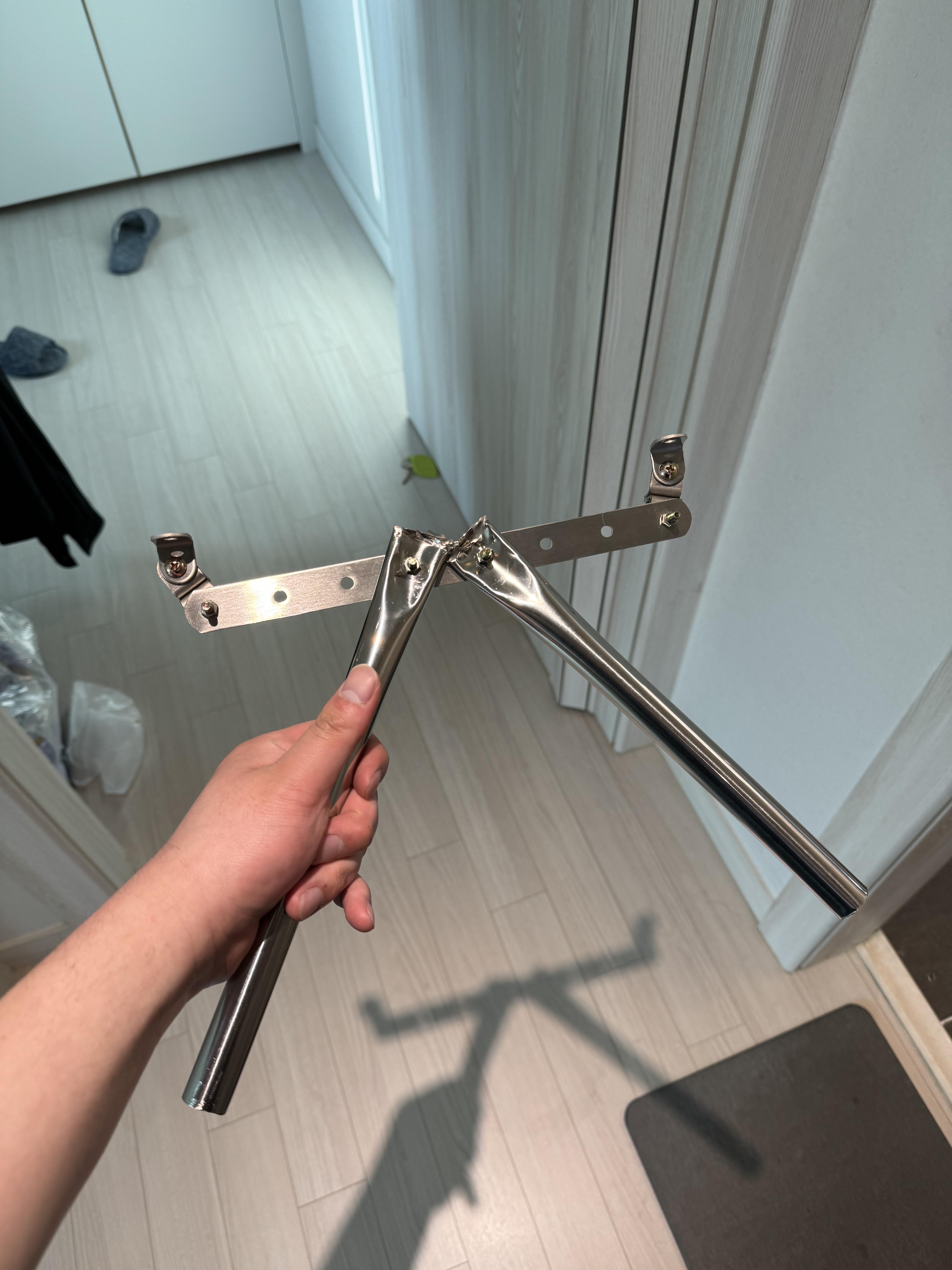 우선 ㅣ자 브라켓에서 가장 가까운 두 개의 구멍에 봉을 연결했는데, 한 칸씩 멀리 배치해줘야 할 것 같다. 그리고 궁극적으로 도색이 필요하다. 빨간색이 좋겠다.