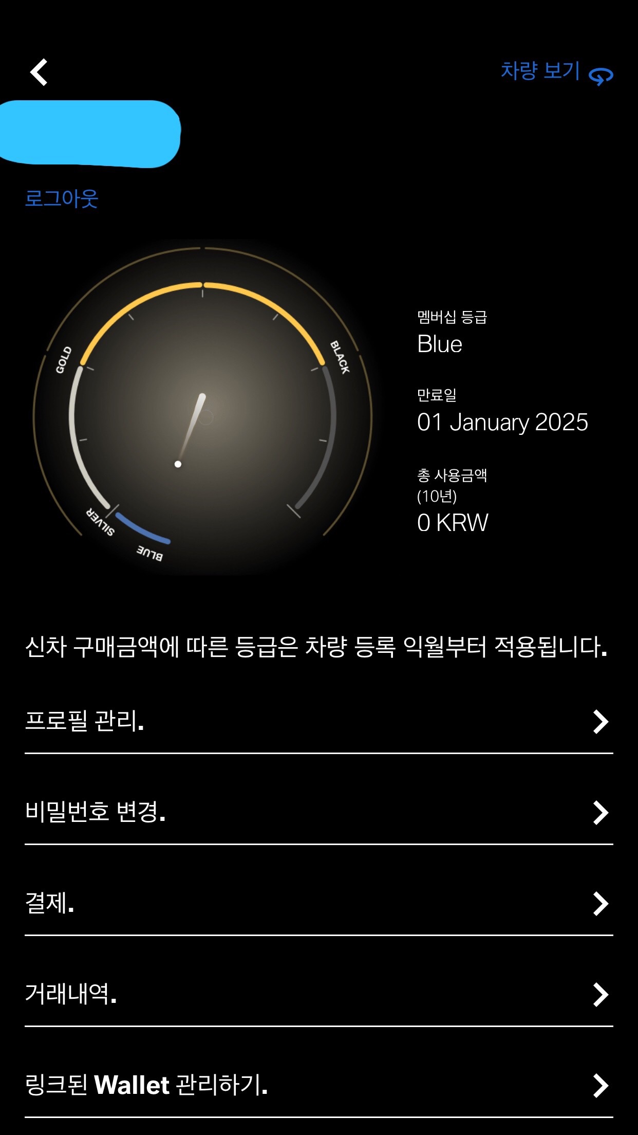 최상위 등급은 "블랙" 등급인데, 3억원 이상 차량구입 비용을 소모해야 한다고 하더라. 아, 그리고 미니, BMW 오토바이 구매는 여기 등급 산정에서 제외된다고 한다.
