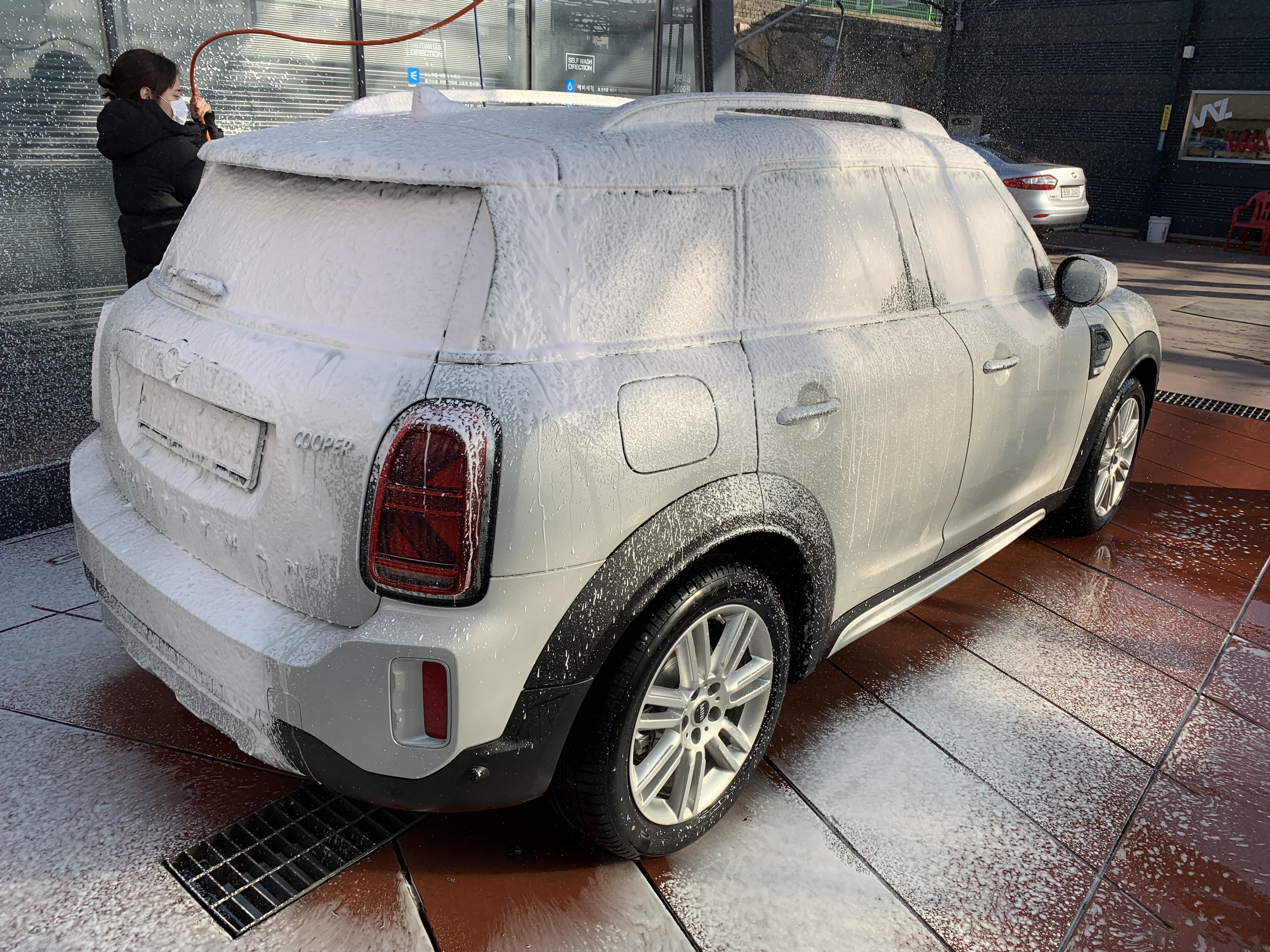 컨트리맨 차량은 사이즈가 작기 때문에 고압수, 폼건, 고압수 각각 1회전만 해도 충분했다.