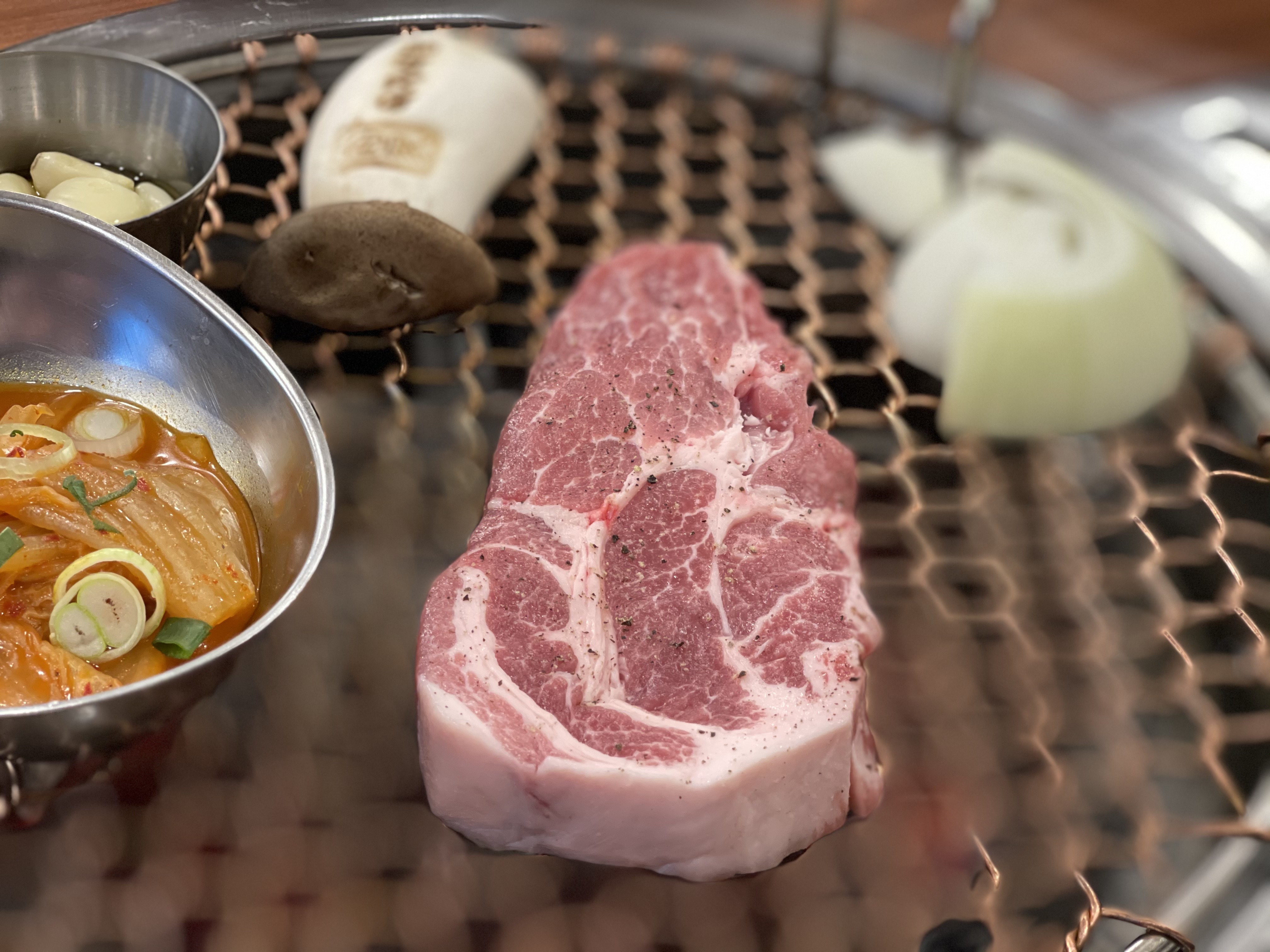 일단 식당 입구부터 첫 인상이 굉장히 좋았고, 테이블도 큼직한 데다 옆 테이블과의 간격도 상당해서 쾌적하게 고기를 구워 먹을 수 있는 구조로 되어 있는 게 가장 맘에 들었다. 때문에, 고기도 당연히 싱싱하고 맛있을 거란 나름대로의 추론을 해서 대담하게 주문을 했다.