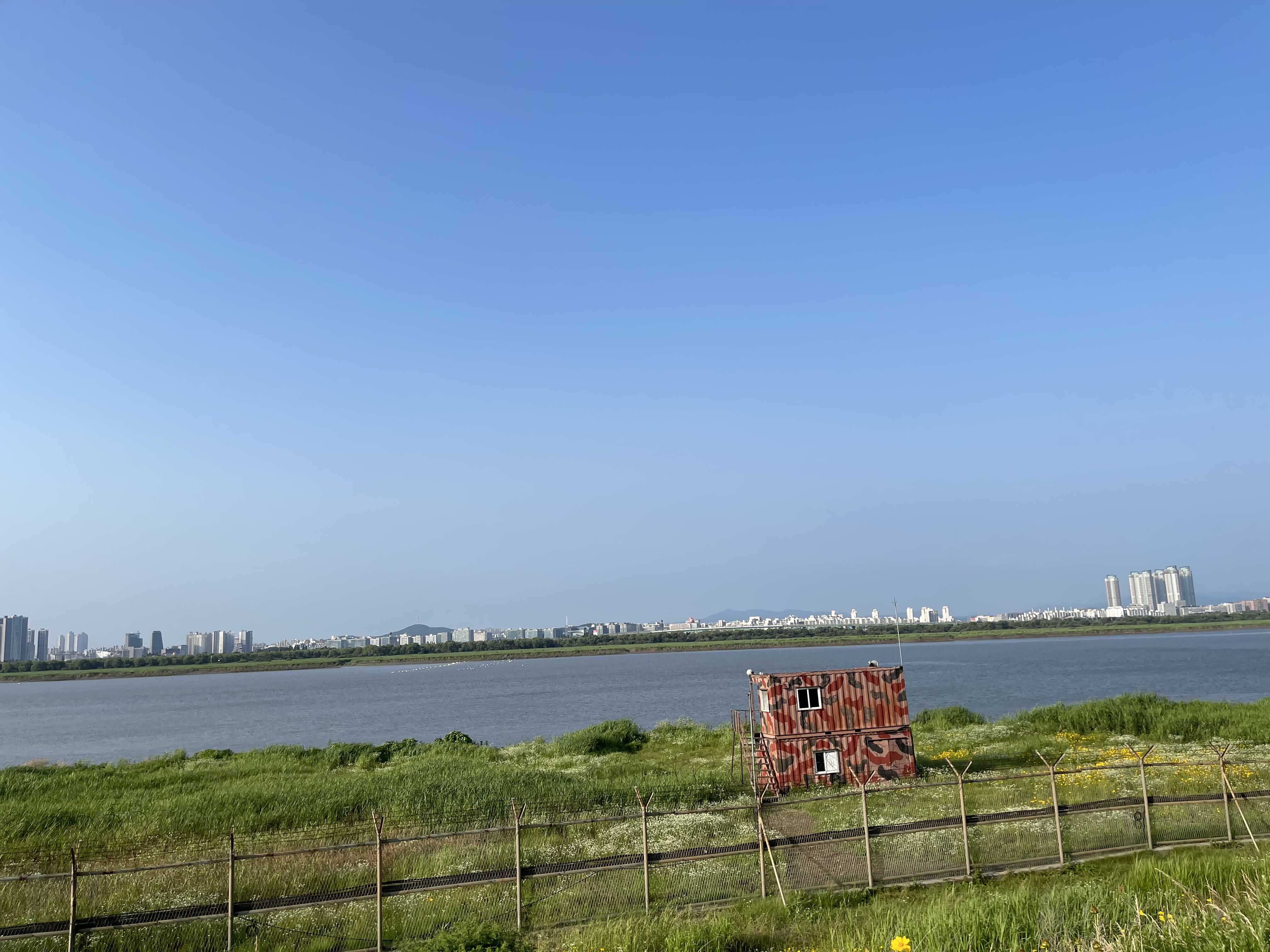 이른 저녁을 배불리 먹고 아내가 대신 운전해 주는 철책 길을 따라오던 중 날이 맑으니 건너편 일산이 아주 잘 보였다. 김포에서 차생샷을 찍기 정말 좋은 도로인 것 같다. 주말에는 차량 이동이 많지 않기 때문이다.