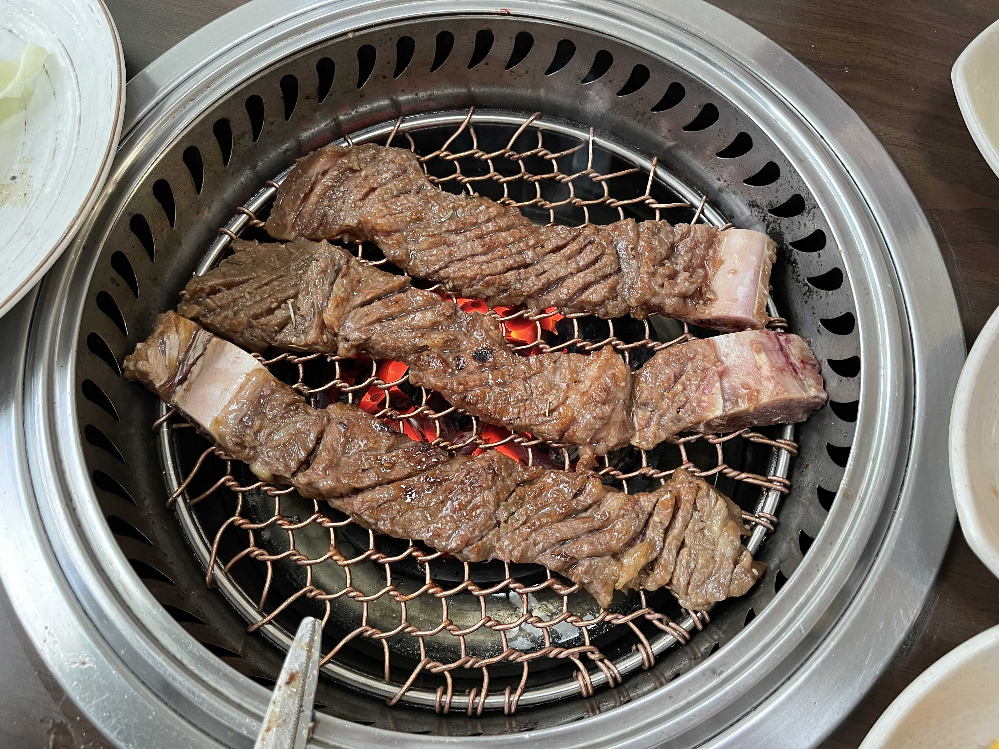 항상 고기를 먹고 나면 된장찌개를 시킨다. 여기에서는 차돌 된장이 메뉴에 있었는데, 살짝 짭조름 한 게 소맥 한 잔이랑 먹기에 아주 안성맞춤이었다. 갈비는 2인분에 끝내기 너무 아쉬워 1인분을 더 시켰다. 간장이 고기에 잘 배어들어 달콤 짭쪼름한 맛이 하루 종일 흘린 땀에 대한 커다란 보상으로 다가왔다.