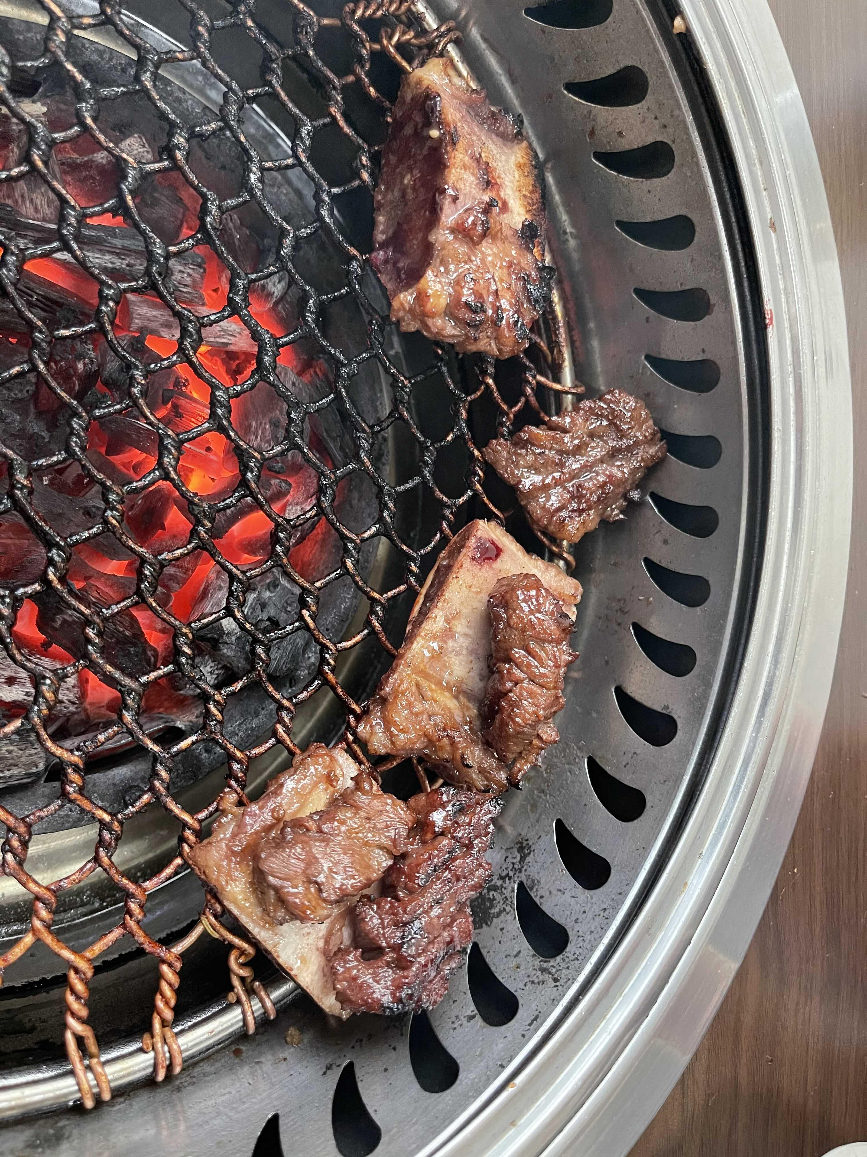 갈비가 먹고 싶어 소갈비를 2인분 시켰다. 오전 내내 운동, 노동으로 땀을 많이 흘린 터라 배가 등에 붙을 것 같아 달달구리 양념갈비가 익을 때까지 눈이 빠지게 기다렸다. 숯불 위에서 점점 익어 가는 갈비를 보면 나도 모르게 군침이 새어나온다.