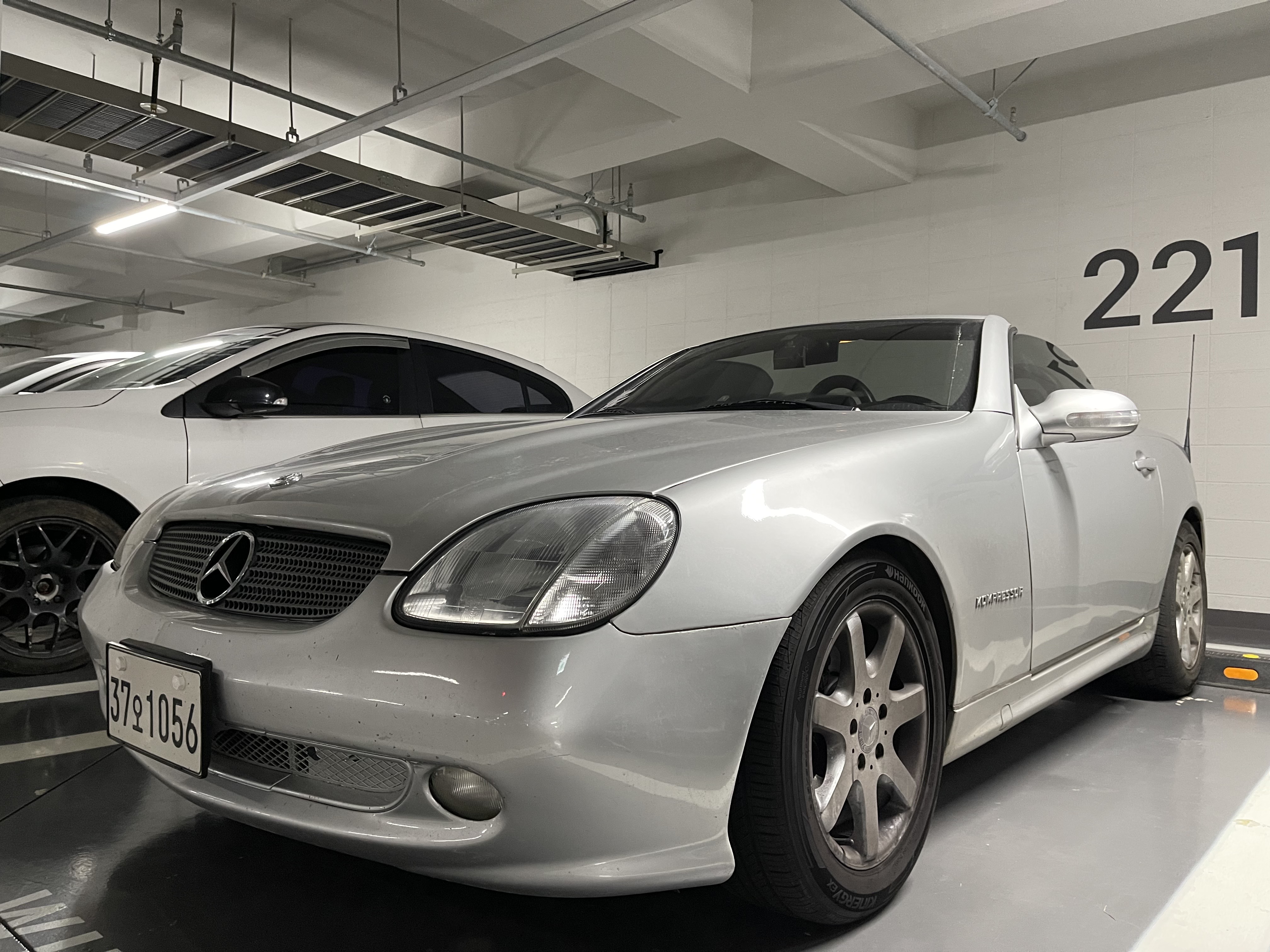 탑을 여는 데 걸리는 시간은 약 24초. 주행 중에는 여닫이가 불가능하다. 요즘 차량들이 10초 안에 탑이 열고 닫히는 거에 비하면 굉장히 느리고 창피하지만 누가 컨버터블을 남 눈치 보려고 타나. 한적하게 달리면서 바람을 느끼는 차량이니 탑이 열리고 닫히는 속도 따위 중요하지 않다. 요즘 시세 500만원 내외로 컨버터블, 그것도 벤츠를 탈 수 있으니 얼마나 좋은 세상인가. 그렇게 어쩌다보니 이 낡아빠진 은색 벤츠 SLK 차량이 내 인생 첫 벤츠 차량이 되었다. 앞으로 이 녀석은 은둥이라 부르겠다. (e36은 흰둥이)