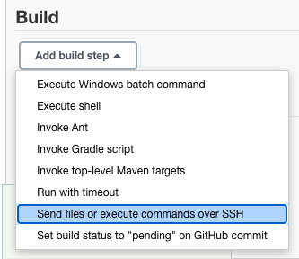 - 빌드 설정 선택 (Send files or execute commands over SSH)