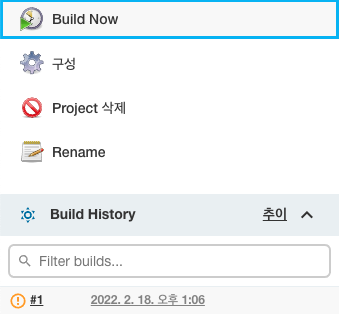 - 저장 후 Build Now 클릭하면 배포 command 작동함