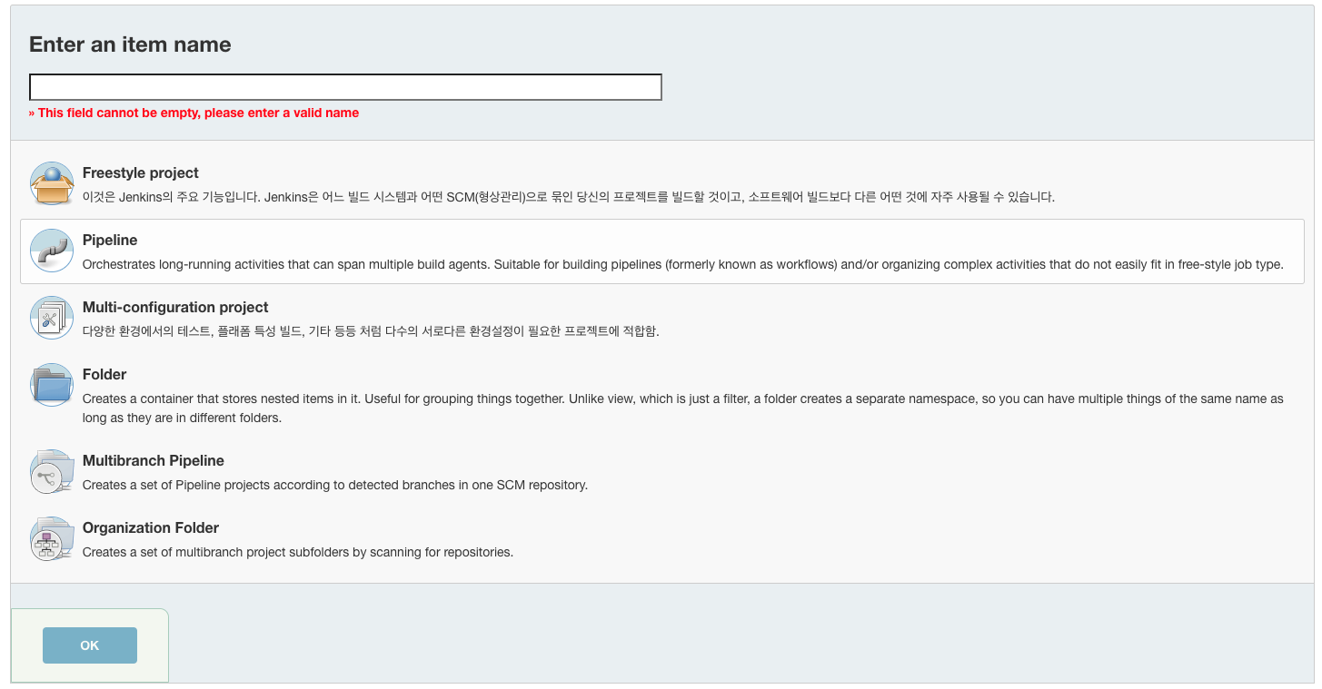 - New Item -> Freestyle project 선택