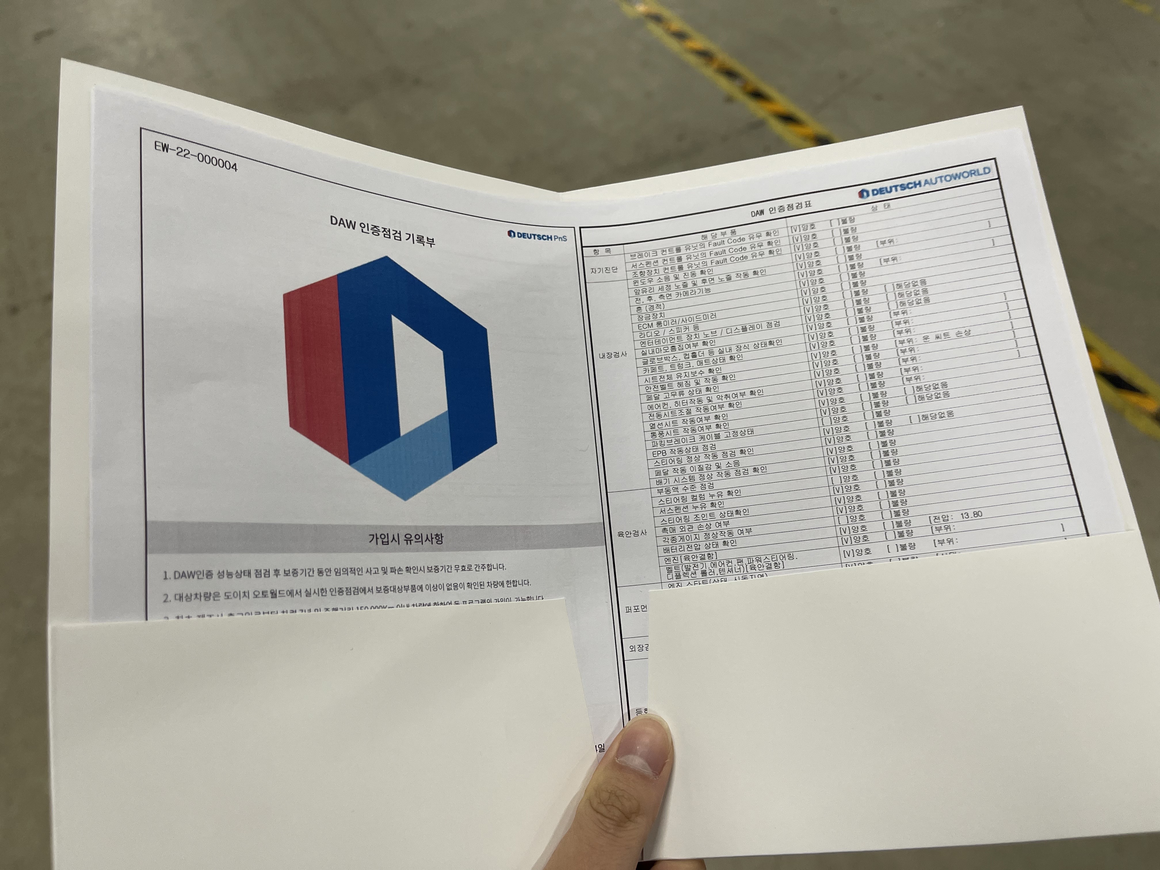 각설 하고, 어쨌든 무사고, 무보험이력이라곤 하지만 혹시라도 전 차주가 어떤 사고에 의해 미수선 처리를 했을지도 모르고, 오일 누유나 내부적으로 보이지 않는 문제들이 있을 거라 생각해서 보증보험 기간 동안 빠르게 성능 점검을 한 번 더 해봐야 겠다고 생각해서 3일간 차량을 실컷 운행한 후에 수원 도이치오토월드 PnS 성능검사소에 방문했다.
