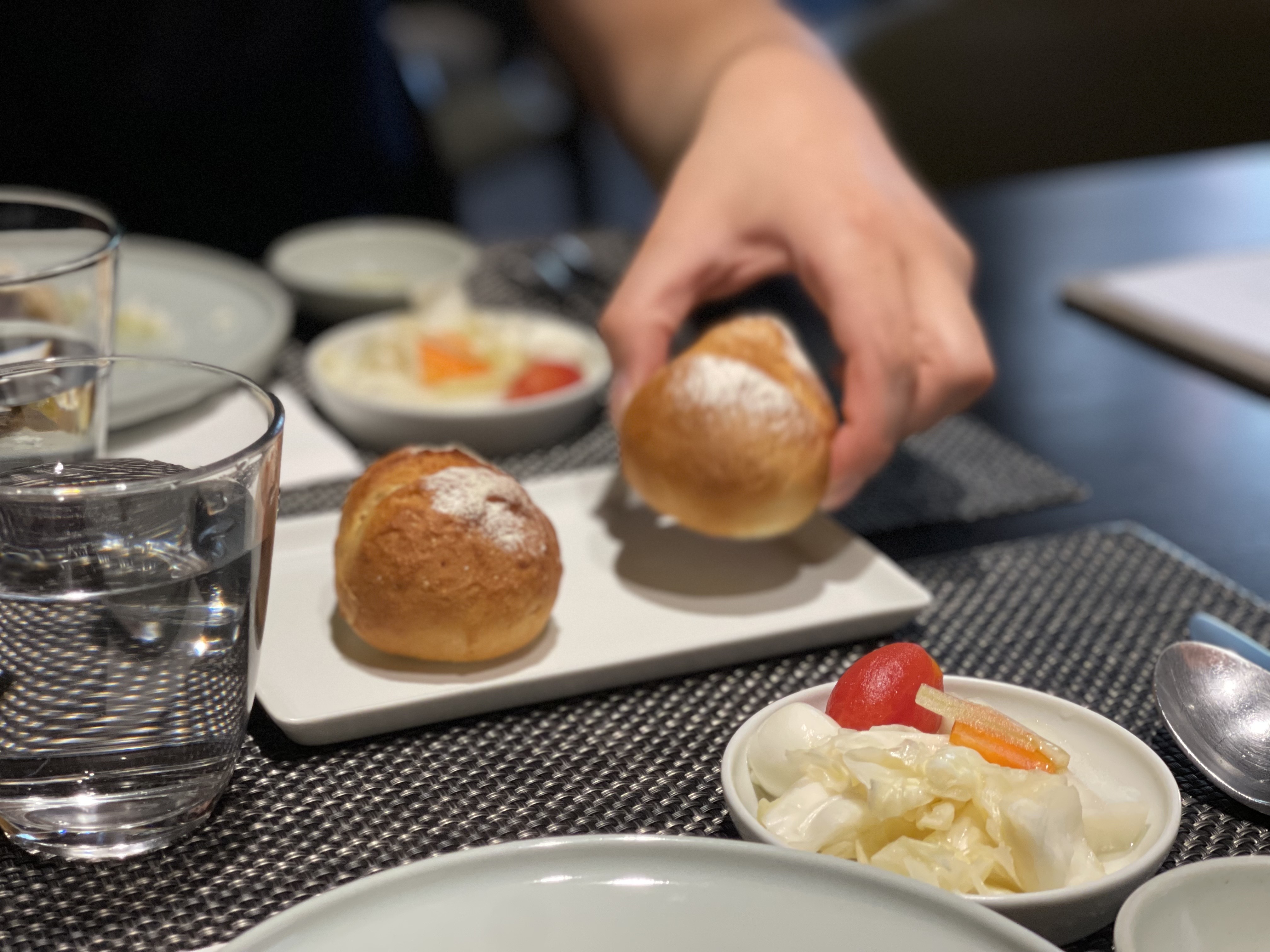 두 번째로 나온 수프는 너무 맛있어서 사진도 제대로 못 찍고 해치웠다. 구엄닭이 들어간 토스카나식 수프라는데, 닭 육수향이 은은하게 나지만 이국적인 풍미가 느껴지는 수프였다. 양식에 문외한인 나에게는 너무 신기한 맛이었음