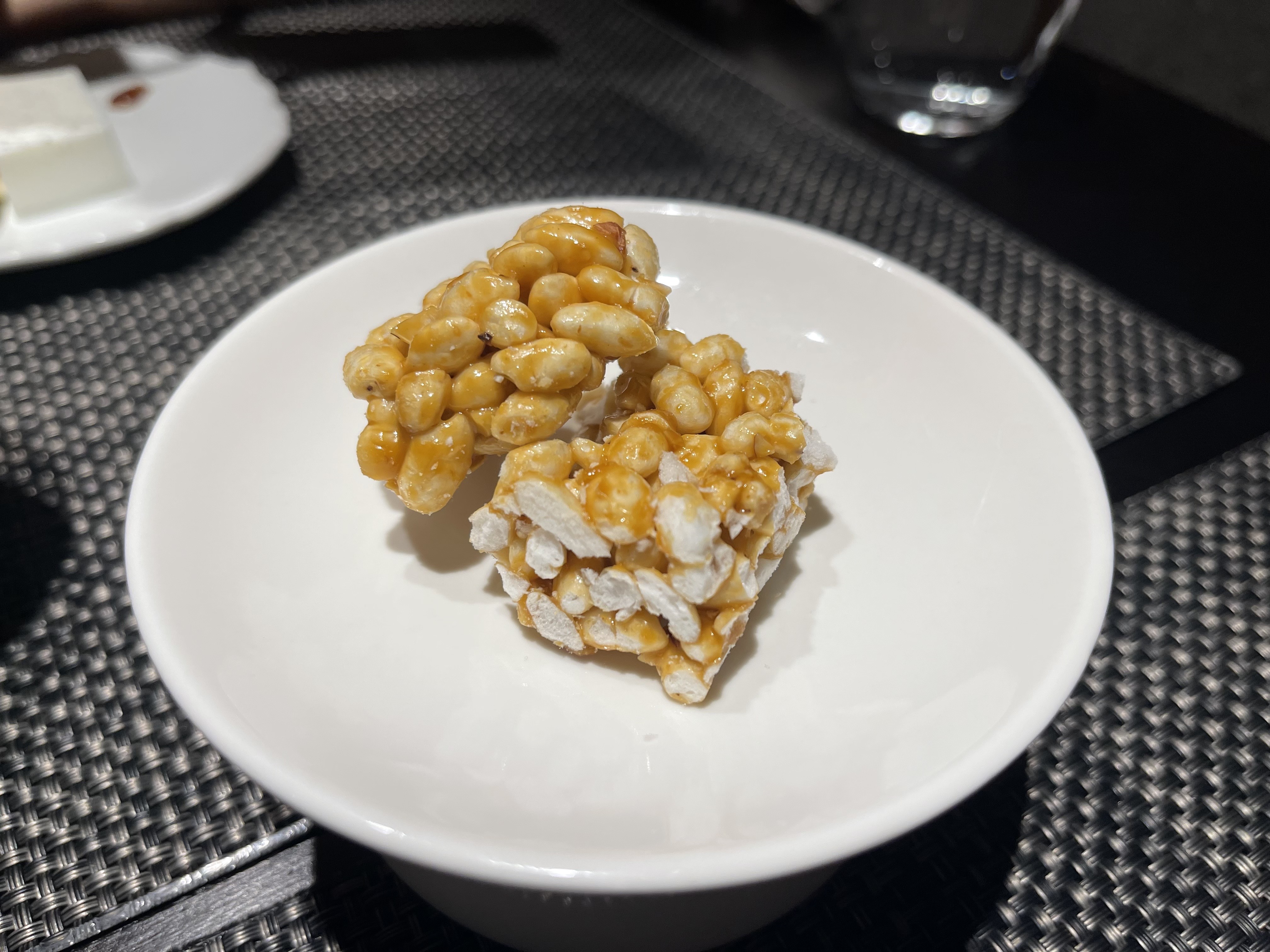 가운데는 판나코타인데, 젤리인지 두부인지 모를 비주얼에 달콤하니 맛있었다. 루이보스 티도 너무 쓰지 않을까 했는데, 시원한 얼음도 들어있고 해서 한 방에 원샷했다. ㅋㅋ. 마지막 꺼는 튀밥을 볶아서 나온 후식인데, 캐러맬이 발라져 있는지, CGV에서 파는 캐러맬 팝콘 맛도 나고 달콤하니 맛있었다.
