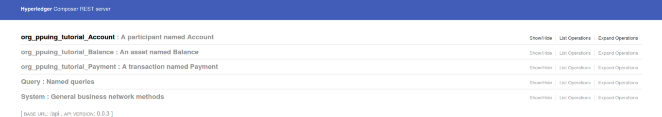 여기서 playground는 hyperledger를 UI상에서 모델링할 수 있도록 도와주는 툴이고, composer-rest-server는 REST API Swagger를 제공해서, REST API를 실제로 호출할 수 있게 도와주는 툴이다.