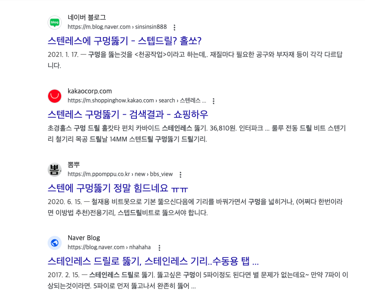 그 다음으로 구멍을 뚫으려 했는데 집에 있는 가정용 드릴 기리로는 구멍은 커녕 흠집도 안 난다. 힘을 조금 주기만 해도 기리가 부러진다. 스뎅, 이렇게 강한 녀석이었다니.. 다시 열심히 구글링을 한다.