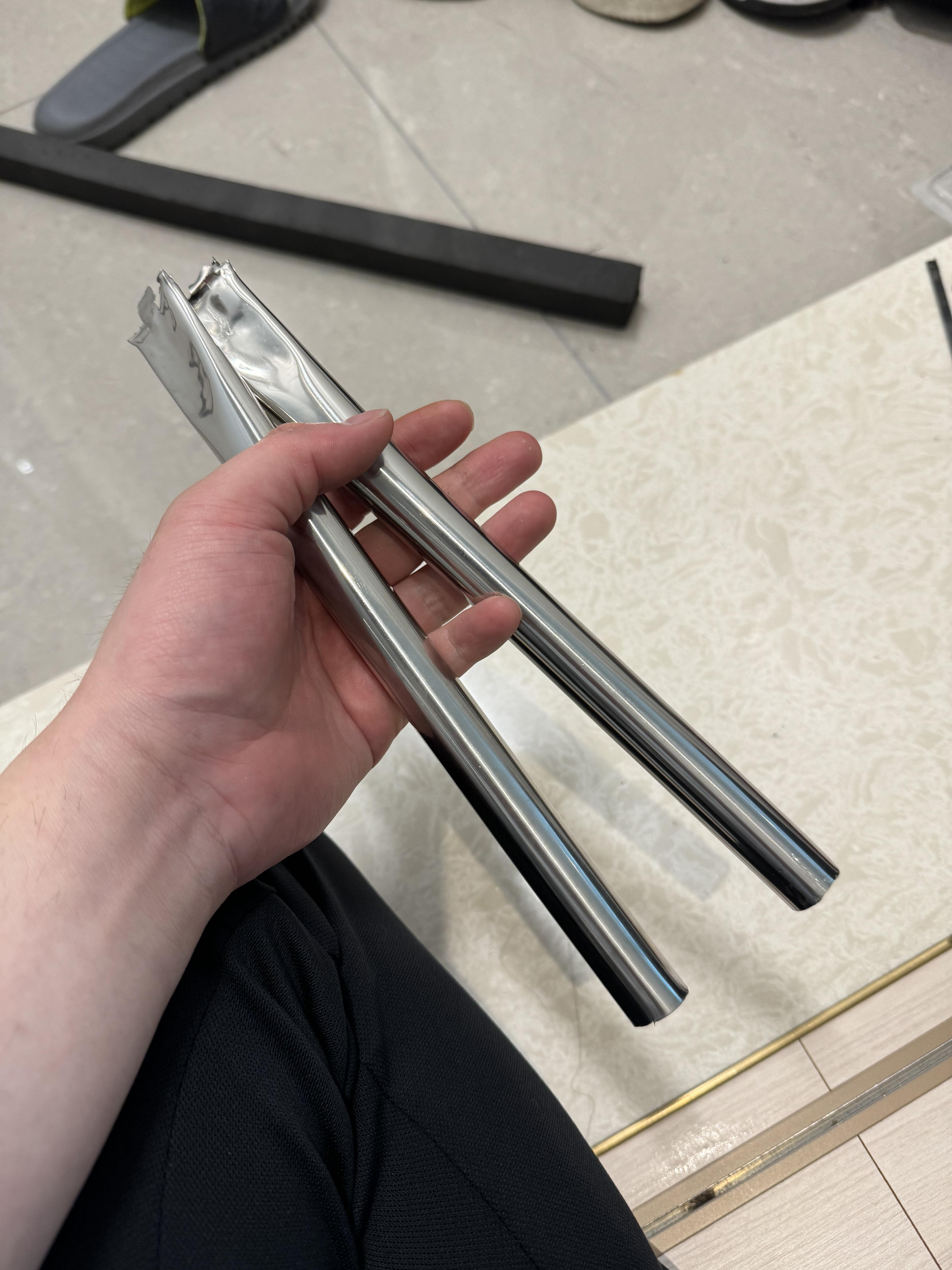 실제로 받아 보니 이 봉. 위압감이 장난 아니다. 그리고 스테인레스가 얼마나 단단한지 알지 못했다. 사실 조금만 생각해보면 우리가 사용하는 냄비 등 열에도 엄청 강하고 튼튼한 게 스댕인데.. 이걸 자를 생각을 하다니, 그것도 집에서.. 아주 무모한 생각이었다.