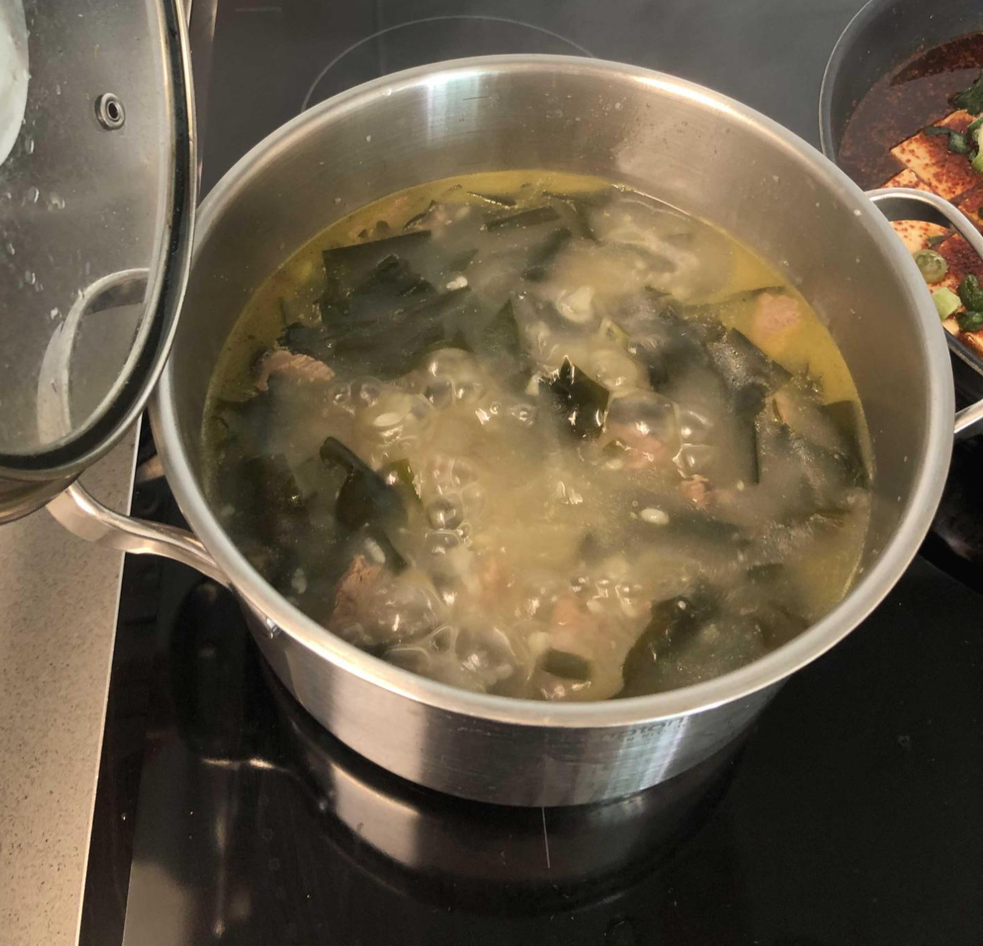 * (조금 짠 경우) 쌀뜨물을 조금씩 넣어가며 간을 보면 된다. 처음 끓일 때는 조금 싱거울 수 있는데, 끓이면서 점점 짜지기 때문에, 소금, 간장을 더 넣으면 안된다.