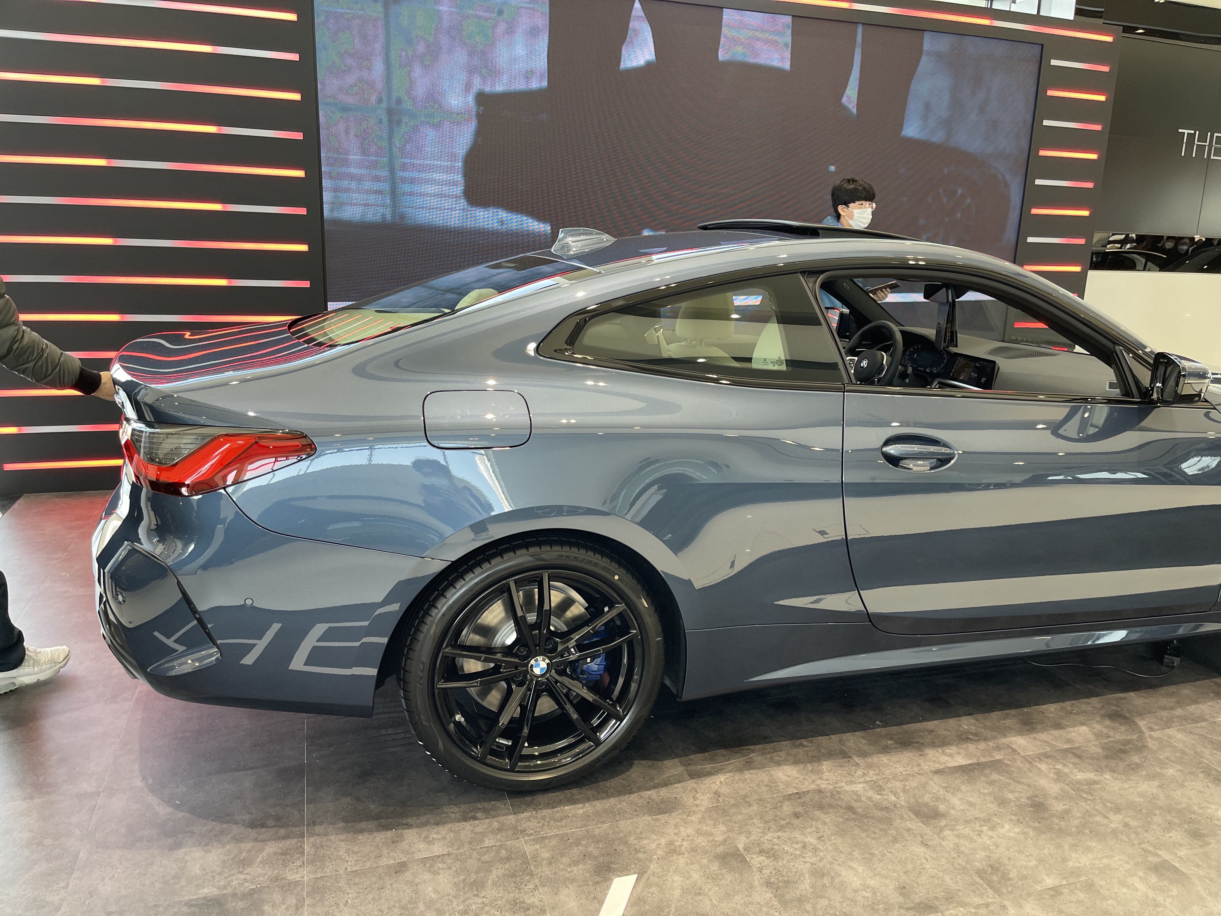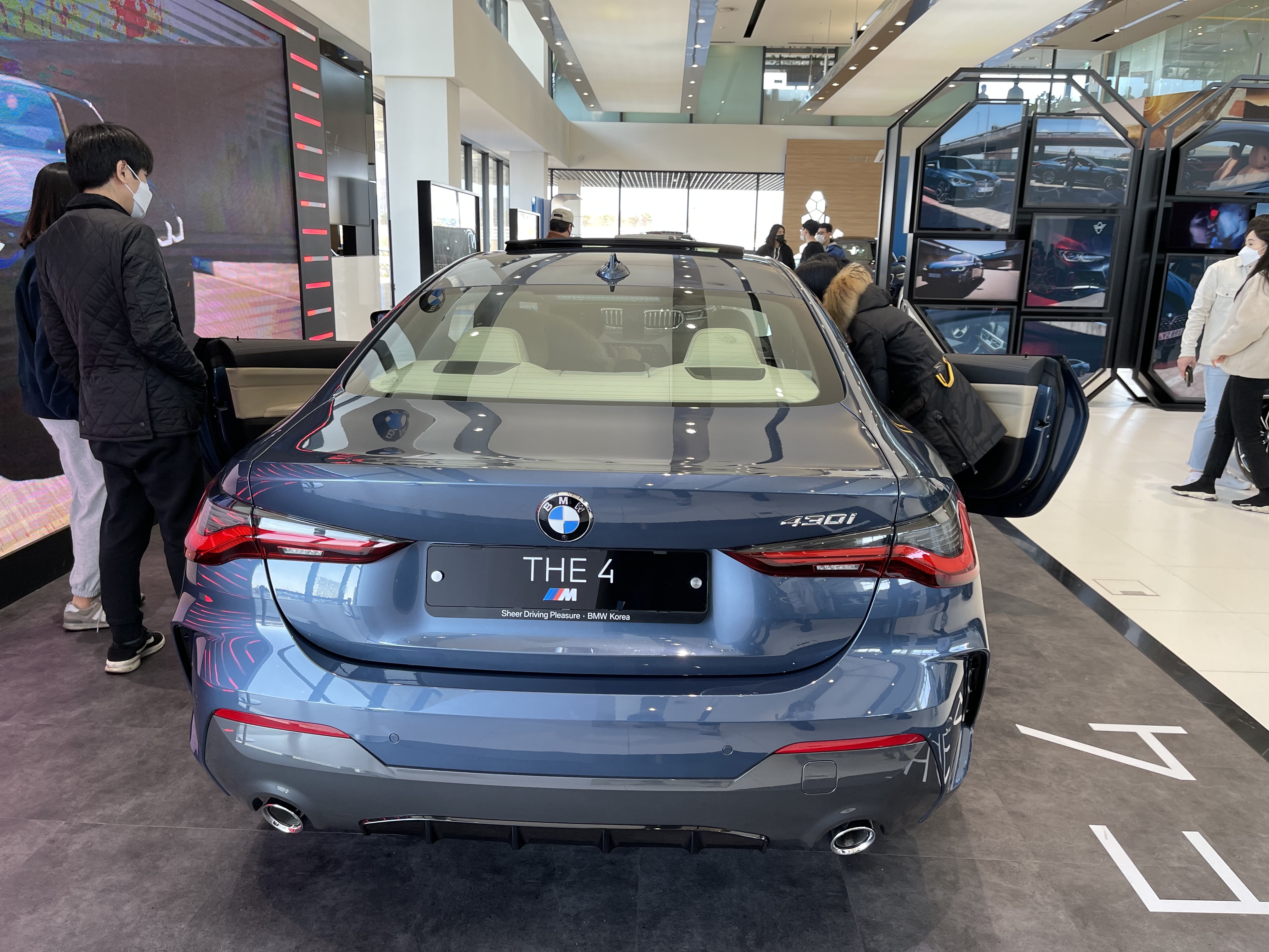 차량의 후면부가 미니 8시리즈라는 생각이 충분히 들게끔 하는데, 약간 다른 점은 테일램프와 머플러이다. 테일램프의 경우 8시리즈는 끝이 약간 각지게 생겼지만, 4시리즈의 경우 뾰족하게 마감된다. 머플러의 경우 4시리즈는 원형 머플러가 들어가지만 8시리즈는 각진 머플러가 들어간다. 이 머플러는 m440i 를 선택하면 8시리즈와 동일한 머플러가 들어간다고 한다. 그리고 테일램프 하단부에 작은 에어덕트는 4시리즈와 8시리즈가 거의 비슷하게 생겼다.