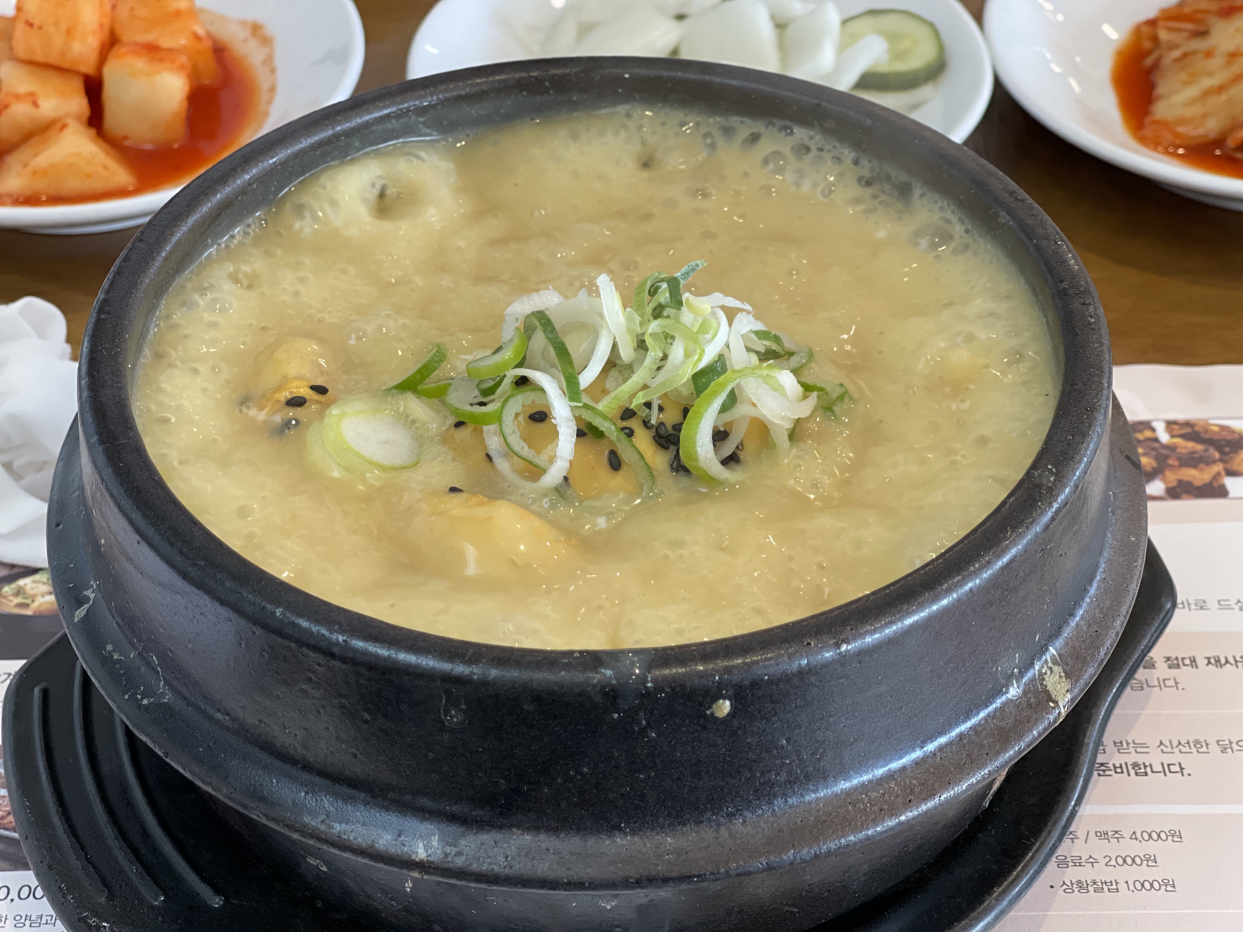 고기를 어느정도 파먹다 보면 닭 몸통 안에 있는 밥이 발견되는데, 일반 삼계탕집보다 더욱 꾹꾹 눌러 담은 것이 확인된다. 역시 여기가 김포 삼계탕 일대장 집인가 .. 밥알을 국물에 살살 풀되, 덩어리가 너무 풀어지지 않는 끈끈함을 유지하며 국물과 함께 먹으면, 쫄깃쫄깃한 밥알의 느낌을 살리면서 너무 짜지 않게 잘 간이 된 국물 맛을 제대로 느낄 수 있다.