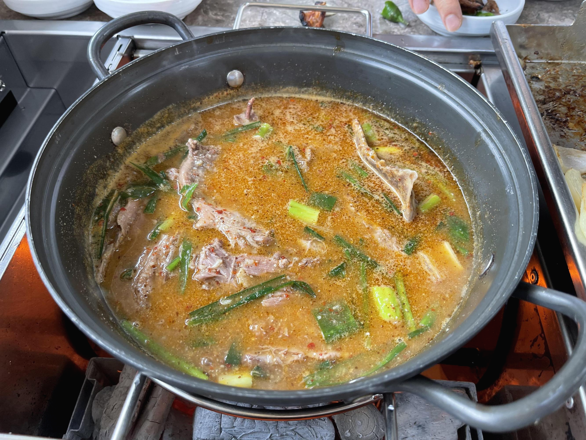 구이를 어느 정도 다 먹어 가면, 마지막으로 오리탕을 주시는데 국물이 굉장히 진해서 술안주로 먹기에 안성맞춤이다. 하필 점심 식사로 와서.. 그리고 다이어트 중에 와서.. 술도 못 마시고, 밥만 살살 말아 먹고 왔다.. (아쉽)